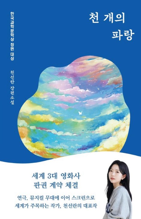 지인의 추천으로 읽게 된 천선란 작가의 <천개의 파랑>. 국내에선 이미 20만 부가 판매되었으며, 미국 펭귄 랜덤하우스를 포함한 10여 개국에 판권이 수출된 전 세계에서 주목받은 작품인데요. 최근 세계 3대 영화사인 워너 브라더스 픽쳐스와 영화화 판권 계약을 체결하며 스크린 진출도 앞두고 있습니다.