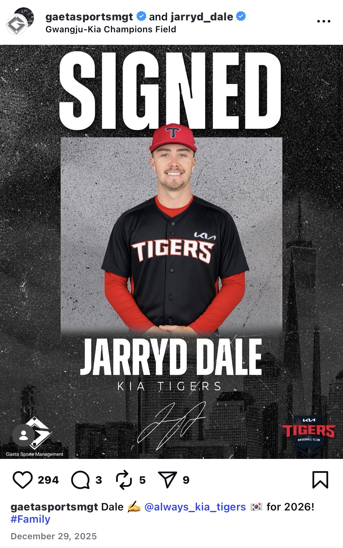 오늘은 KIA 타이거즈의 아시아쿼터 선수, 제리드 제임스 데일에 대해 알아보겠습니다.